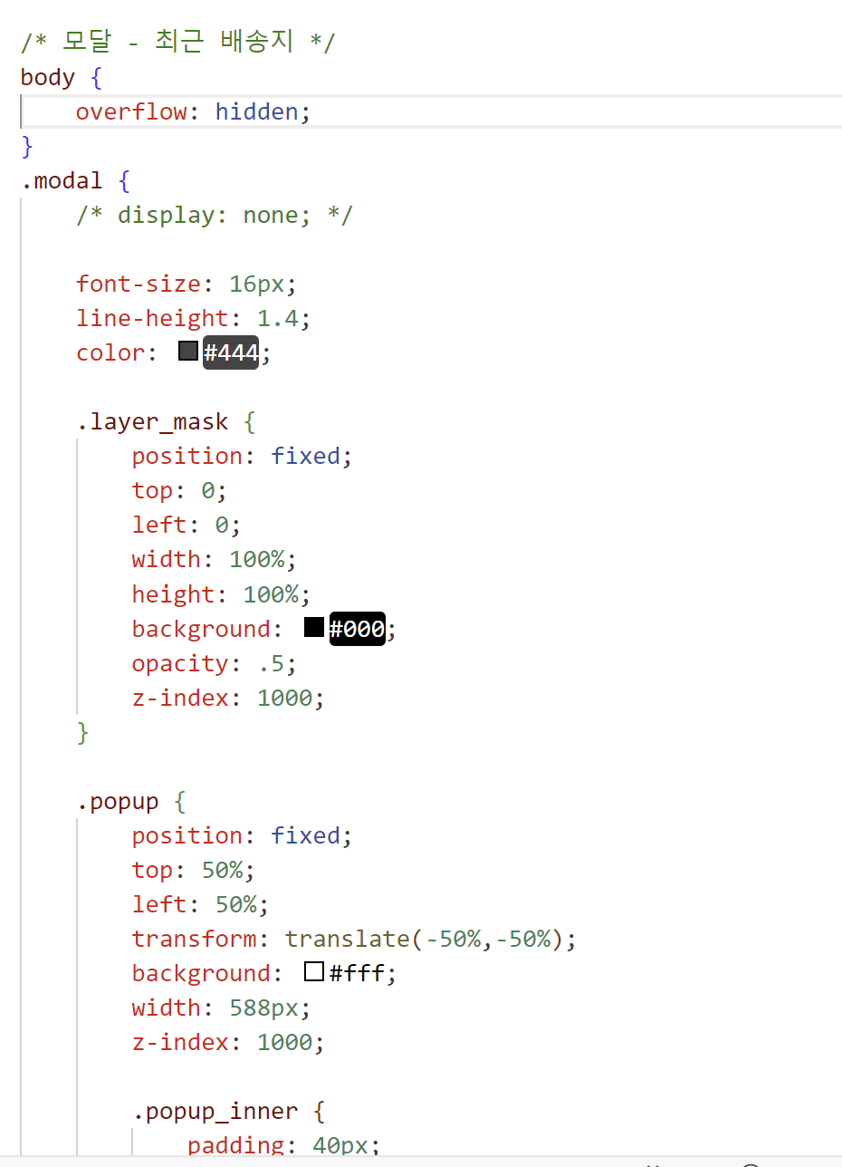 모달창 뒷부분이 스크롤이 되지 않게 하는 방법
