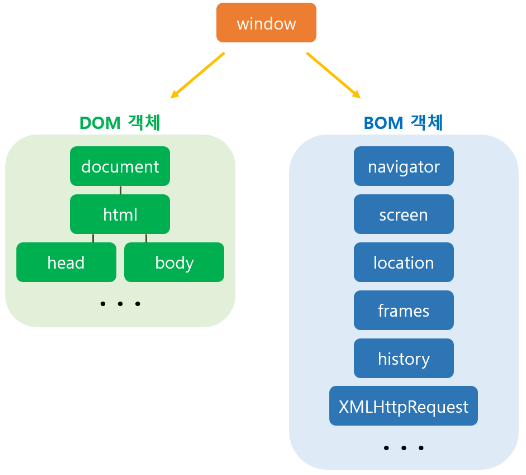 - 모든 객체는 window 객체의 하위 객체로서 존재한다