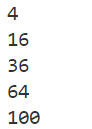 // 1부터 10까지 중 짝수의 제곱 계산