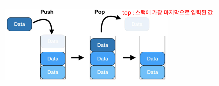 - 스택의 자료구조는 삽입과 삭제시에 O(1), 탐색에는 O(n)의 시간복잡도를 가지게 된