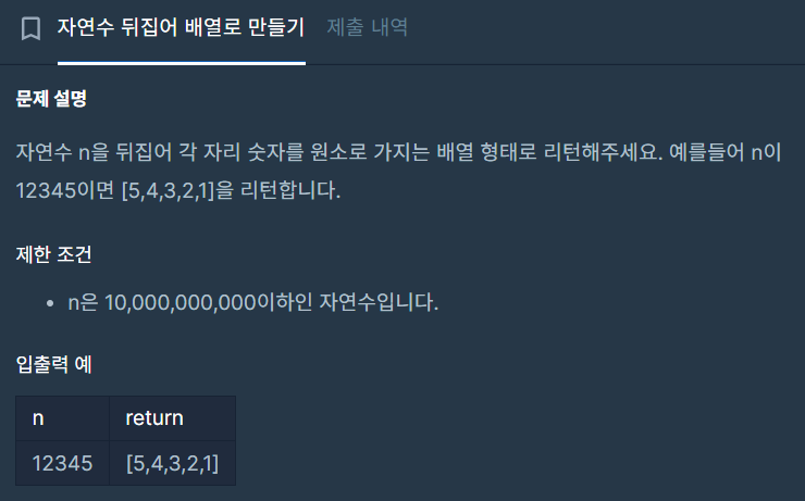 public class 프로그래머스_자연수뒤집어배열로만들기 {