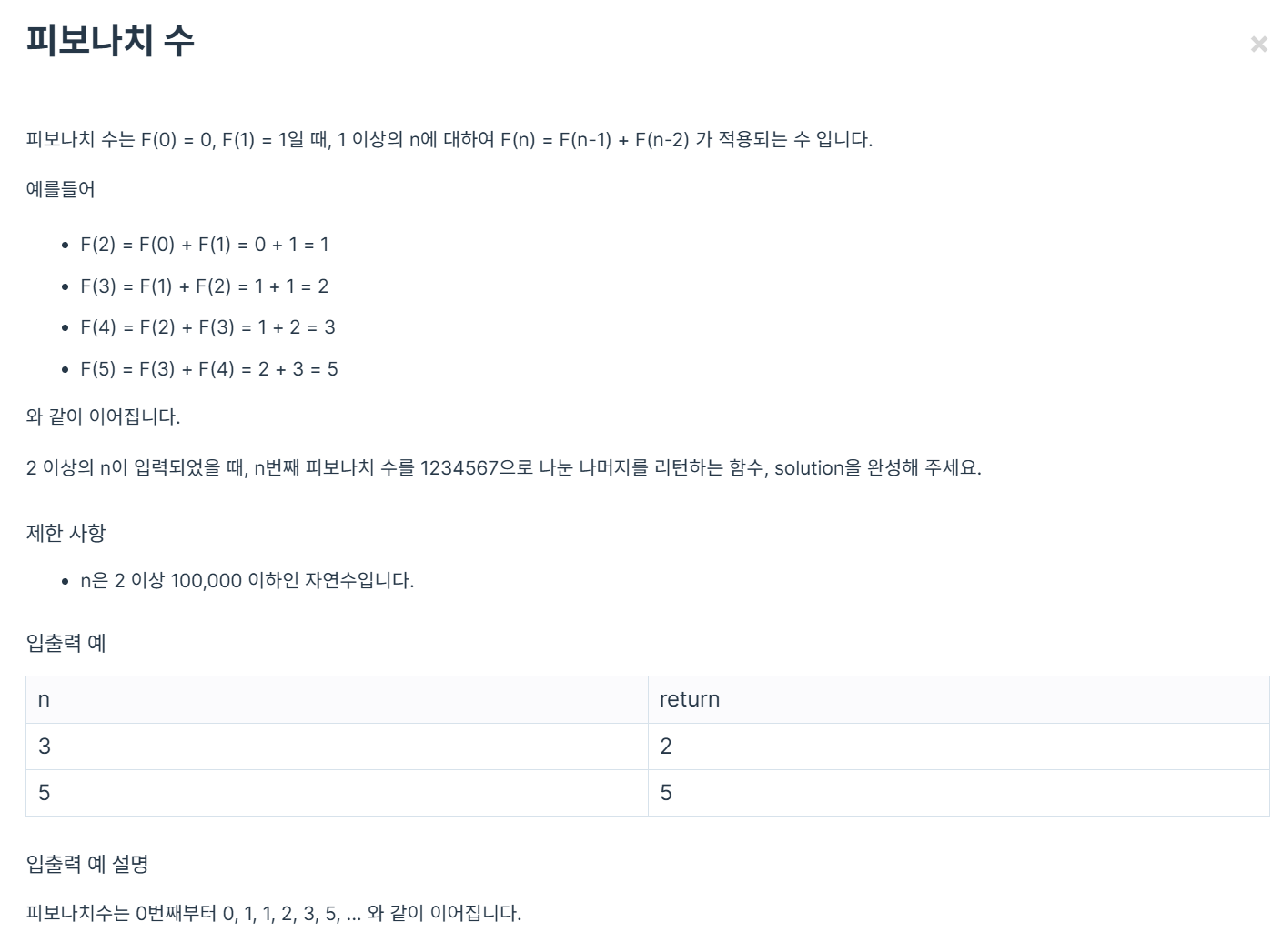 피보나치 수를 계산할 때 중간 결과에 모듈러 연산을 적용하여 값이 너무 커지지 않도록 한다.