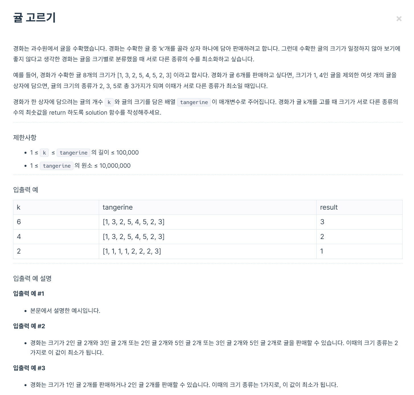 public class 귤고르기 {