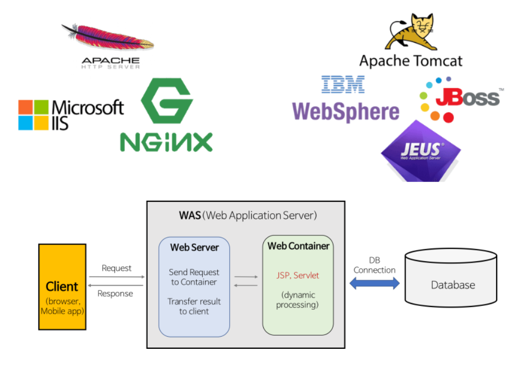 - WAS는 웹서버와 함께 동작하며, 웹 서버로부터 받은 동적 콘텐츠 생성을 위한 요청을 처리한다