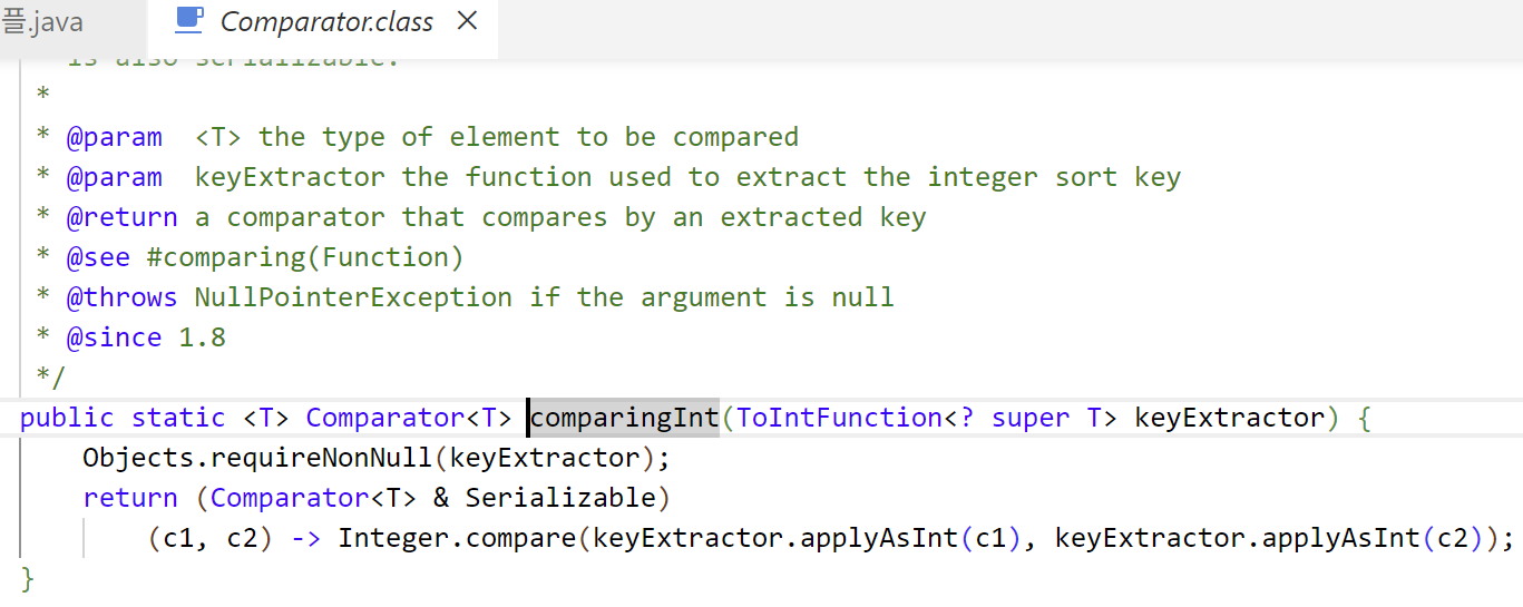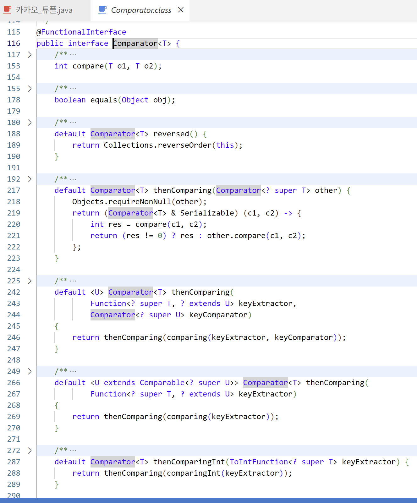 java.util.Comparator<T>는 두 객체를 비교하는 방법을 정의하는 함수형 인터페이스