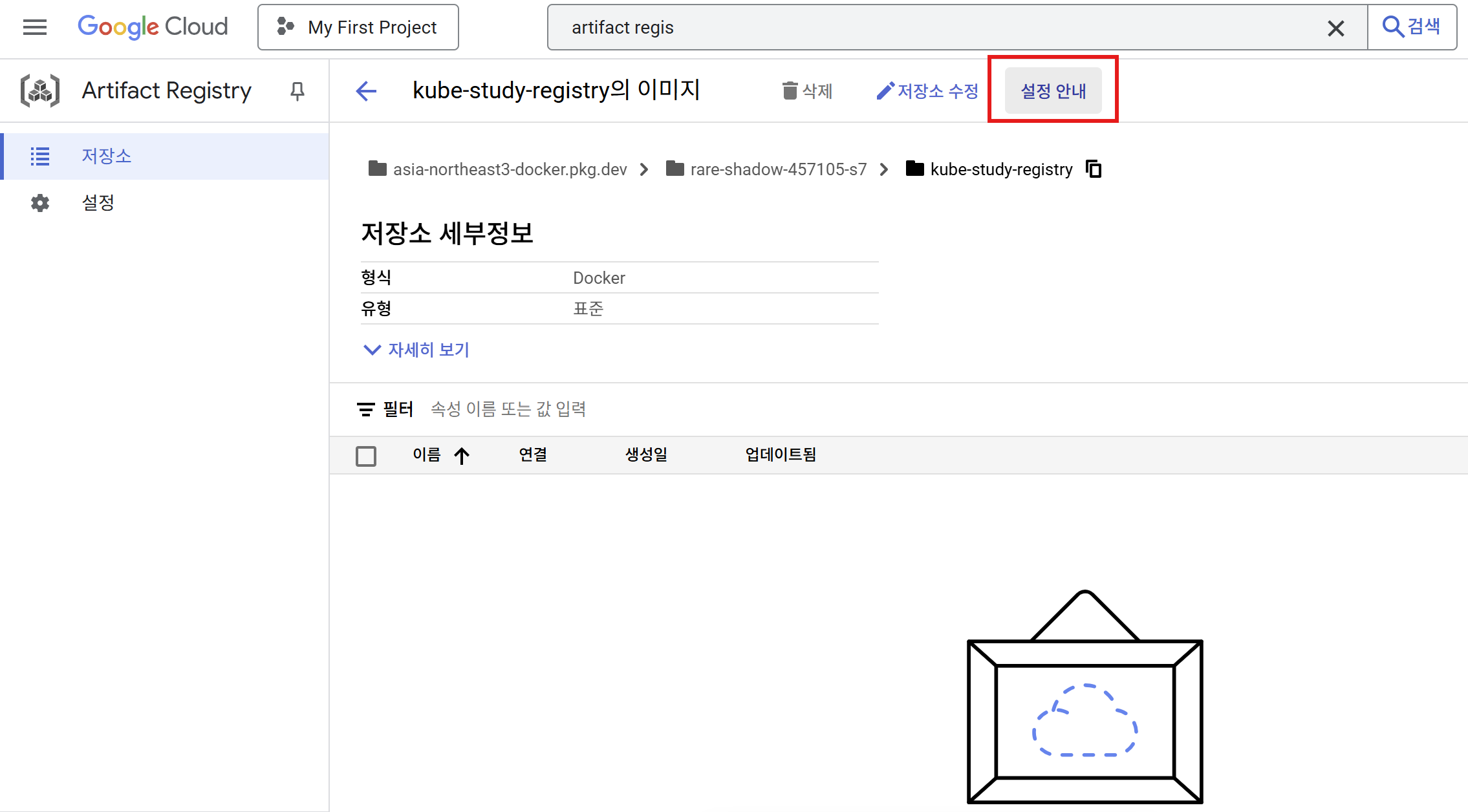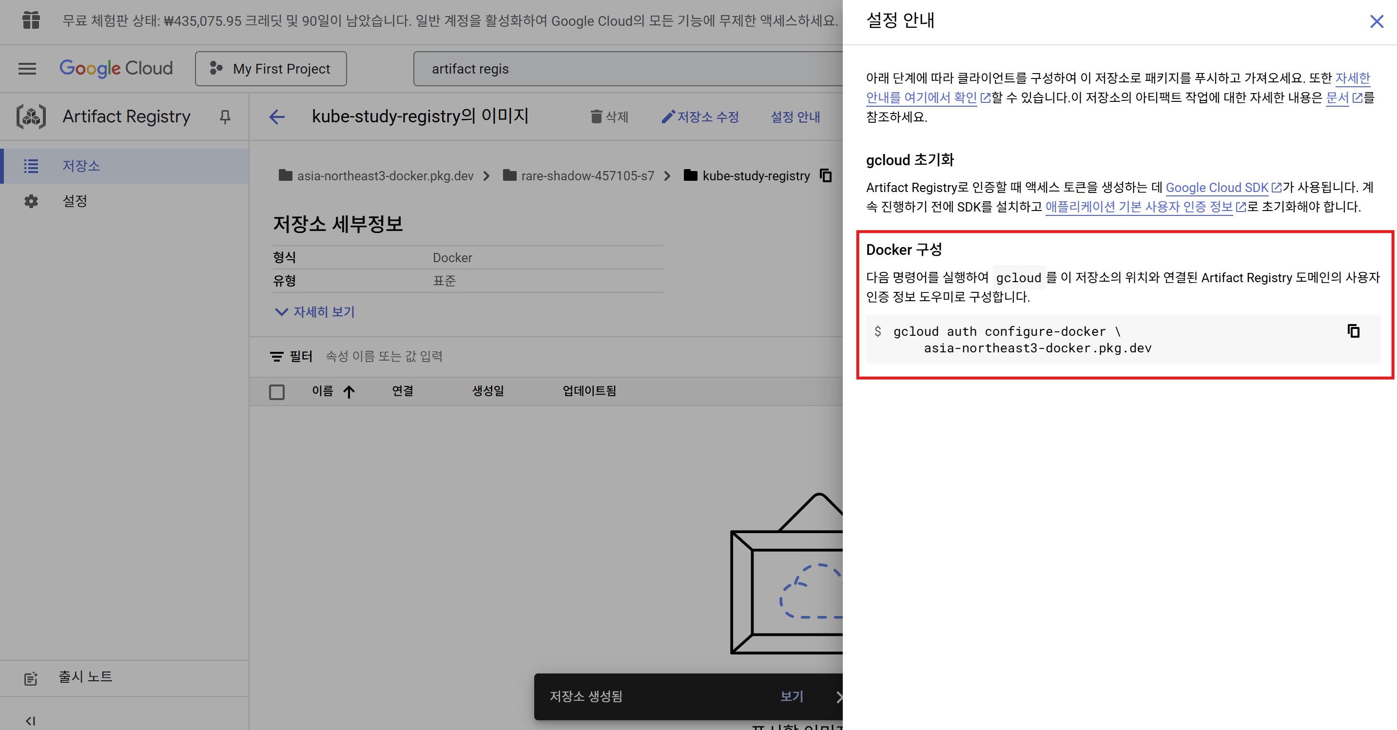 - 만든 저장소의 주소가 `docker.pkg.dev/study-project/kube-study-registry` 라면,