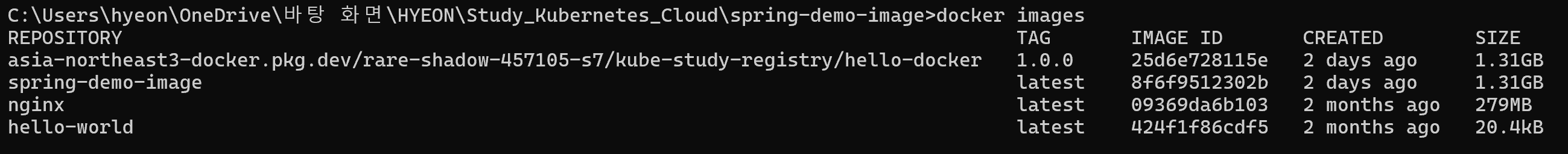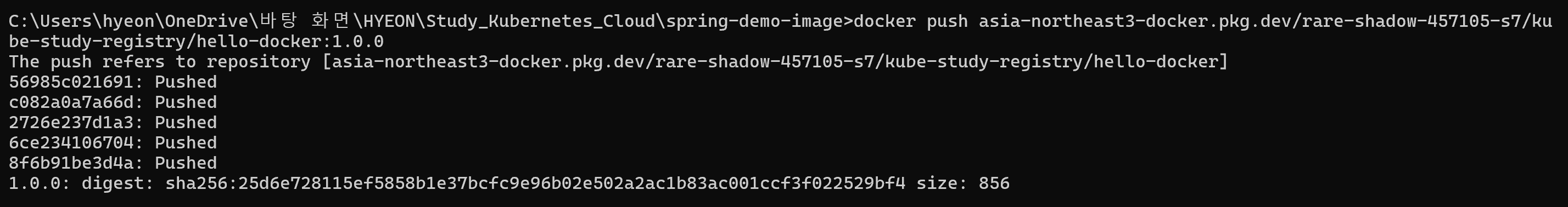 예) docker build -t asia-northeast3-docker.pkg.dev/rare-shadow-457105-s7/kube-study-registry/hello-docker:1.0.0 .