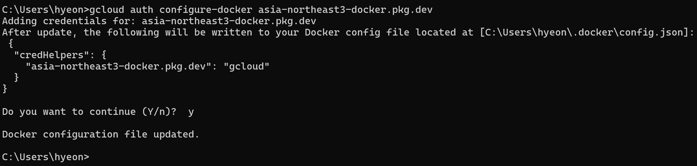 2. gcloud auth configure-docker 명령으로 로컬 Docker와 인증 연결