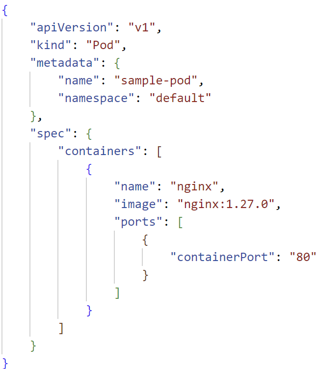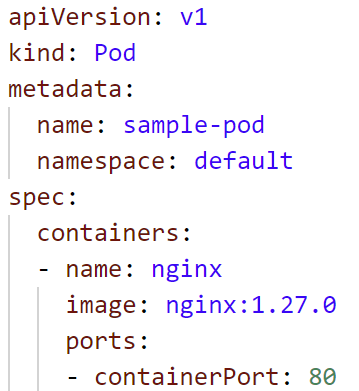 - apiVersion: v1 : 쿠버네티스 리소스 형식 버전 (v1은 기본 Pod 형식) / 거의 고정 값이다