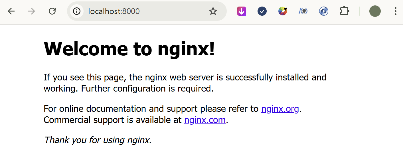 - localhost:8000 → Pod 안의 Nginx 80포트로 연결된다