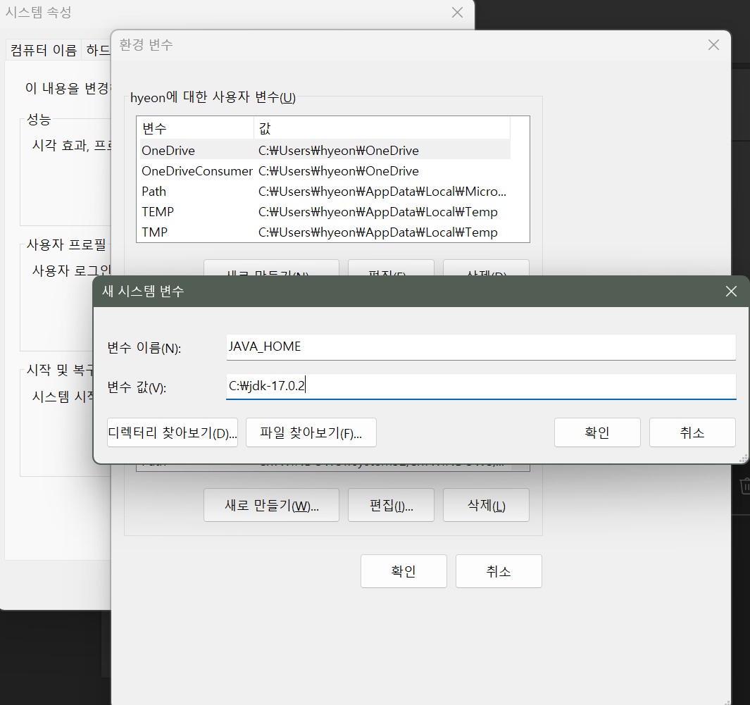 변수 값 : JDK 설치 폴더 경로 C:\jdk-17.0.2
