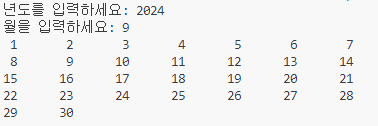 // i=0, j 가 first_Day(시작요일)보다 작지 않을 때