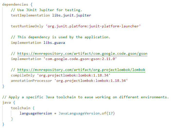 - Java 버전 오류가 난다면 languageVersion = JavaLanguageVersion.of(17) 로 변경해주기