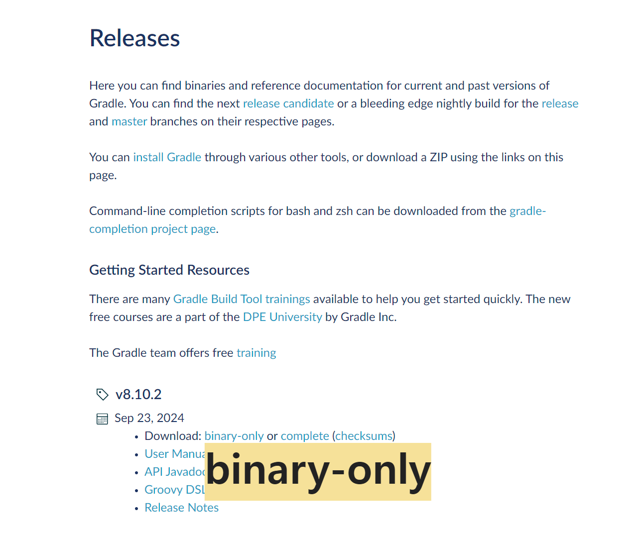 ▷ https://gradle.org/releases/ 에서 다운로드 => binary-only 클릭